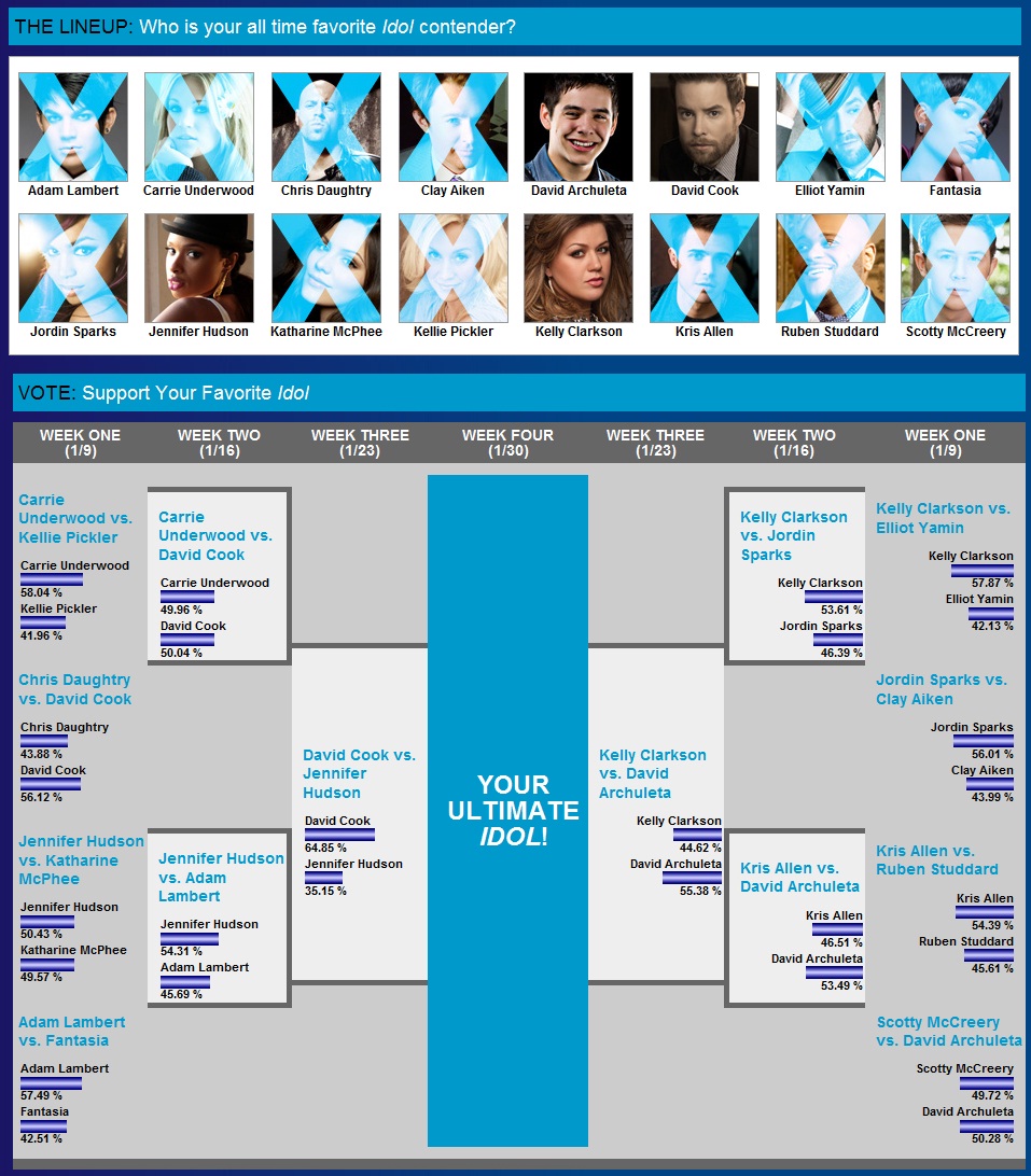で、ジェニファーハドソンと対戦だ!投票だ!ってリンクがまわって来たのですが、私が開いた時にはすでに結果?みたいな状態になってて投票できませんでした。遅い!遅すぎる!