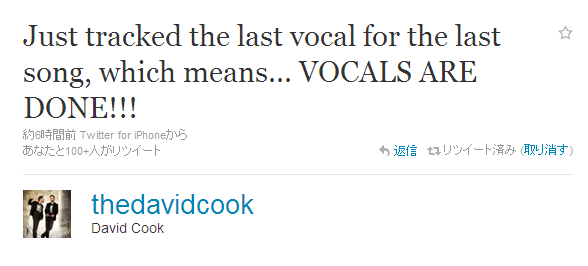 DCのレコーディング・ボーカル終了のつぶやきに対して呼びかけています。