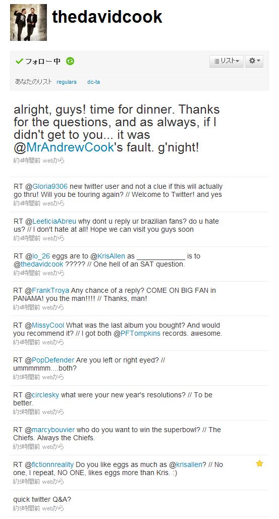 最後は、「よし、みんな!ディナーの時間だ。質問ありがとう。で、いつものとおり、もし僕が返信してなかった人がいたら・・・・みんなアンドリューのせいだから。おやすみ!」