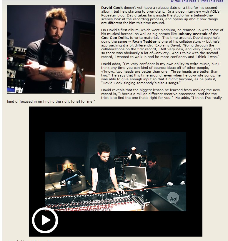 とても好意的な記事で、何人ものアメリカンアイドル卒業者が成功をおさめるのに苦労しているなかで、2008年のチャンプであるDCはそれをすごく簡単にやってのけてしまっているように見せているって。出身地+シンガーソングライターとして紹介。ここもポイント高し。