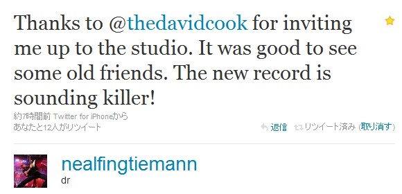 DCのつぶやき:Great day so far! In the studio, tracking guitars. Had a great interview with @aswinn. Ate lunch. And now... More guitars!!!