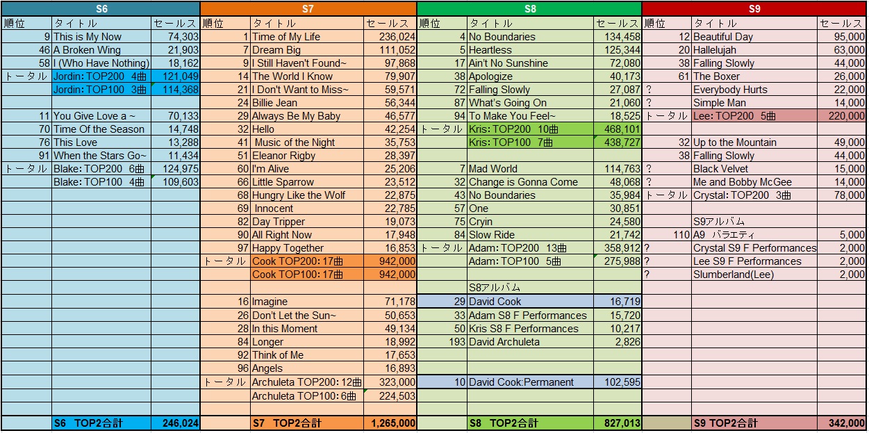 アメリカンアイドル中で発売されるカバー曲の売上枚数っていうのは、発表されないので未だに、全体像が謎な部分。(最後の週のセールスだけは発表されますが。こんな風に)