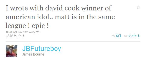James Bourne氏という方なのですが、DCとのコラボについてつぶやいたというより、Mattを見てて、あらく感動したようで、その人がDCと同じレベルだ!っていうことでDCとのコラボが判明した形です。**Mattは今年のXファクターの出場者っぽい。多分・・・