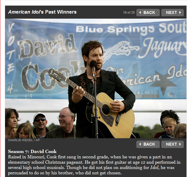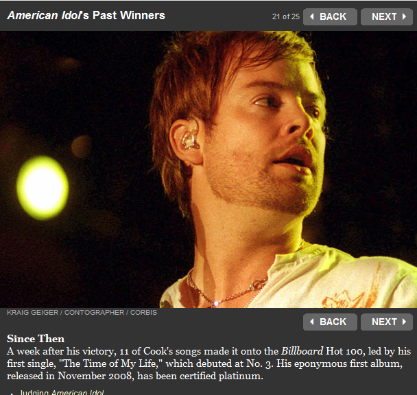 アイドルで優勝した次の週に、ビルボードTOP100にファーストシングルTOMLを筆頭に11曲ランクイン、そして2008年のアルバムはプラチナ認定されてるってコメントしてくれてます。