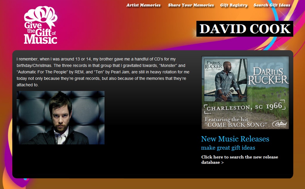 肝心のクッキー部分ですが、このギフトサイトで、レコーディングアーティストが「一番思い出に残ってる音楽ギフト」の話しを共有してくれてるよ、という紹介。