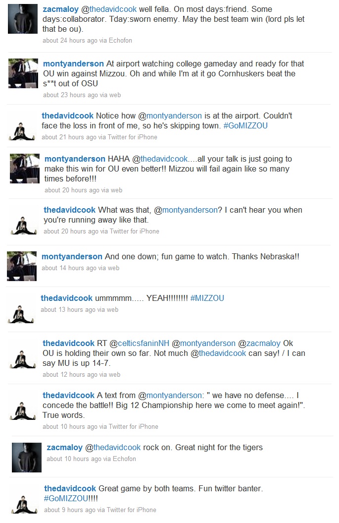 クッキー:両チームとも素晴らしい試合だったよ。ツイッターでのやり取り、楽しかったよ。ミズーリやったぜ!!!!
