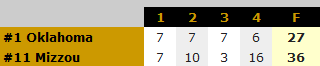 (おそらく試合終了:ミズーリVSオクラホマ 36-27 最後の最後で逆転したので、ミズーリファンは大いに盛り上がったと思われます)