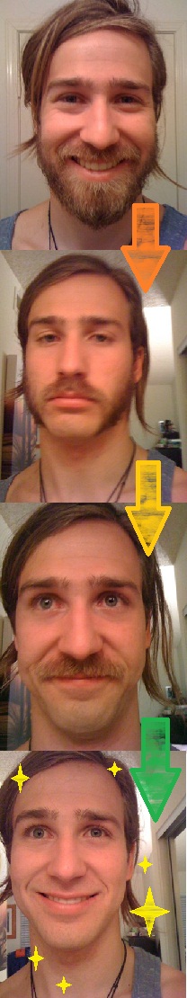 "In the next few minutes, you all will witness the de-evolution of my face... Enjoy"