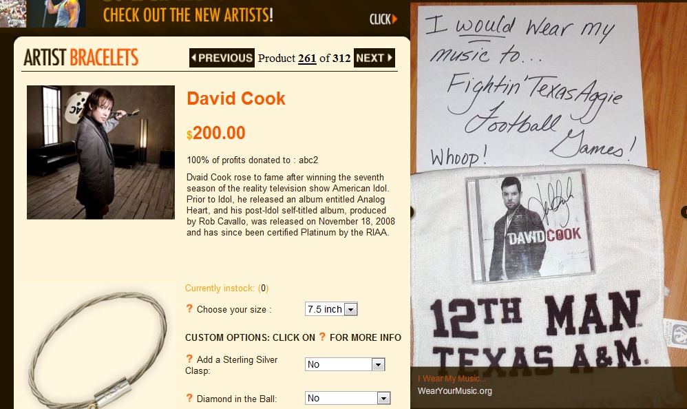 でも、どうやらこのブレスレットは、ギター弦で出来たもので、各アーティストが寄付したギターの弦やシルバーをリサイクルしたものだそうで。