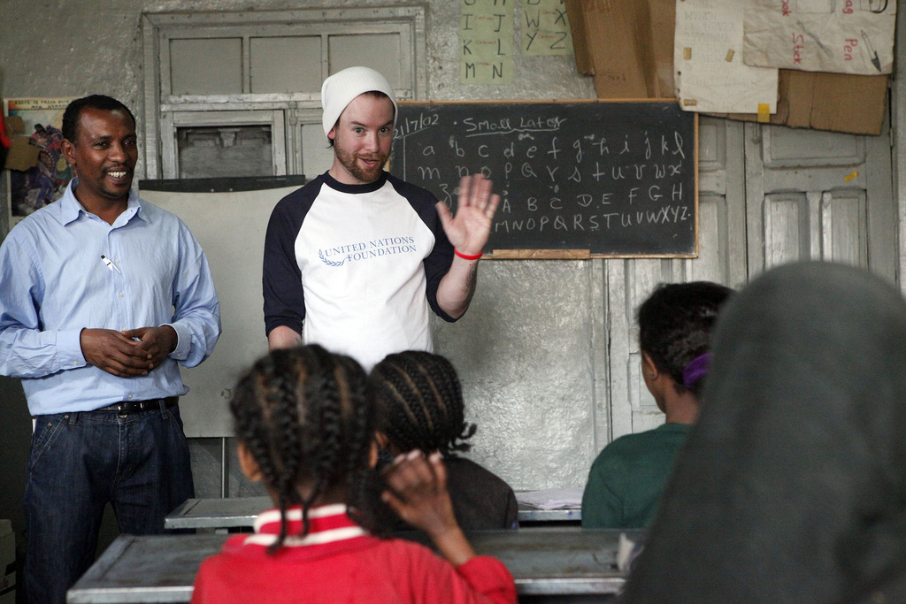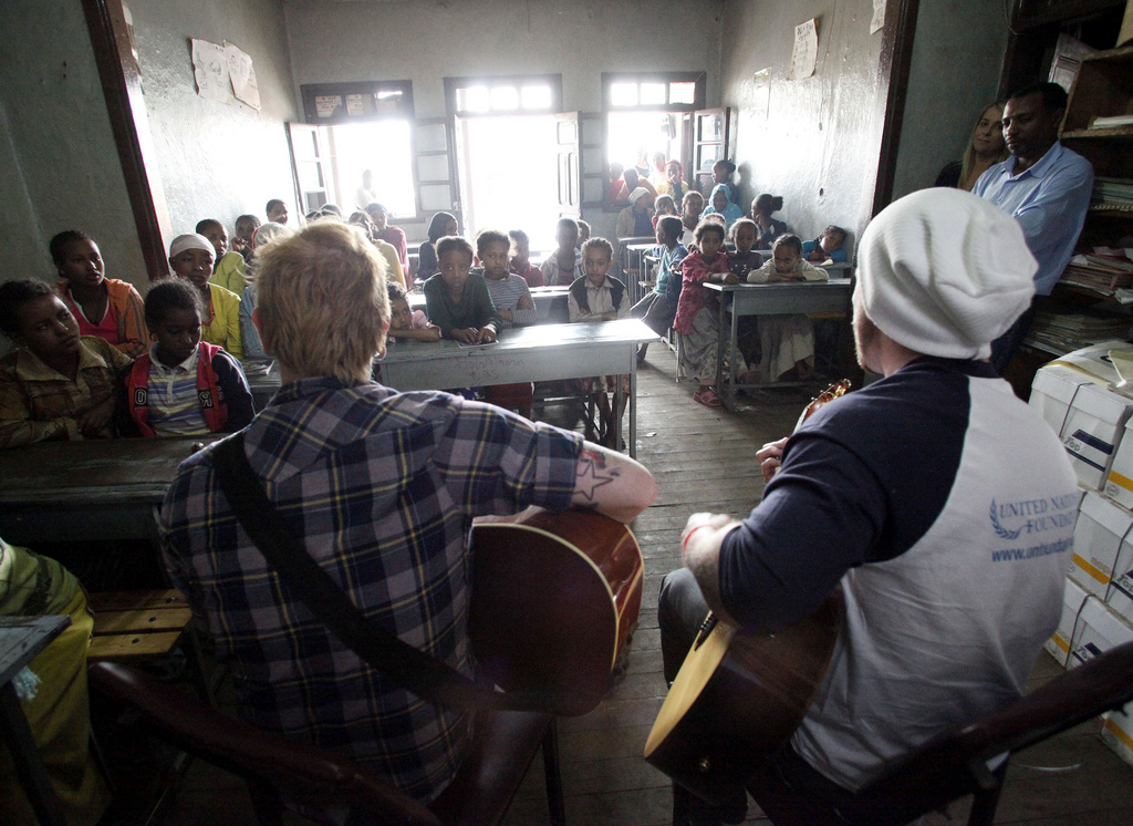 エチオピアのAddis Ababaというところで、アイドルギブスバックとUNファンデーションと活動を.....学校の名前を言おうとしたんだけど、間違えるだろうから、やめとくや。