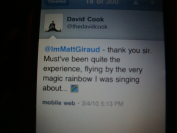 @ImMattGiraud - thank you sir. Must've been quite the experience, flying by the very magic rainbow I was singing about...*