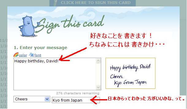 フォントとか、色も変えられるので、色々やってみてください。(フォントや色変えのところは、書き込む欄の左上にあります)