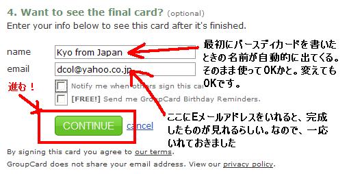 5.出来上がりのカードが見たい人だけ記入