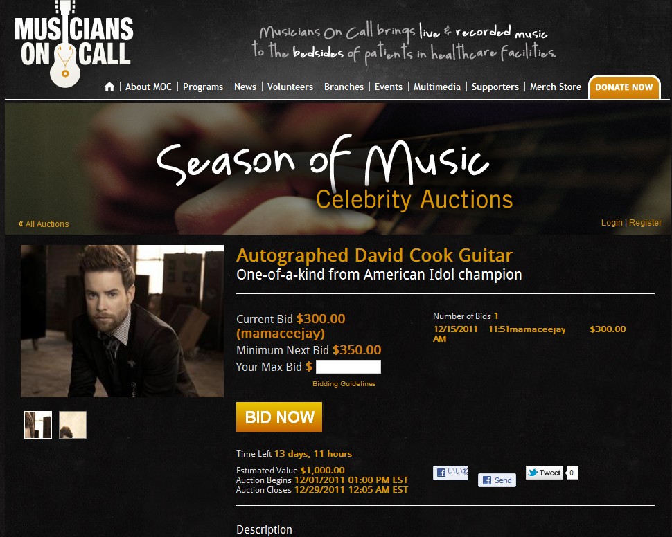 DCサイン入りのギターがチャリティークションに。