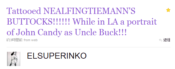 ニールティーマンのケツにタトーしたぜ!って(笑)