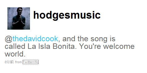 なんと!なんと!出来上がったばっかりの(?)曲名を披露してくれましたよ!その後のツイッターで、「君らはなんて信じやすいんだ」と、からかわれていたことが判明。