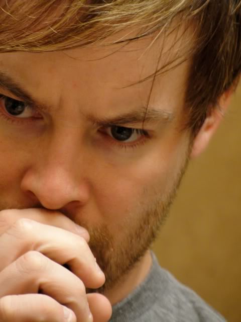 ルーク、クッキー、アンドリューが一緒にディナー。3人で顔をあわせて、3人でアホやってます(笑)