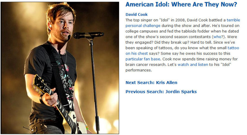 ビルボードでの記事。アメリカンアイドルの今と昔ってことで、24人紹介されてる一人。