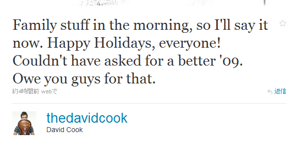 ホリデーソング、今年は特にやりそうもないので、去年のCookさんに登場してもらいましょ!