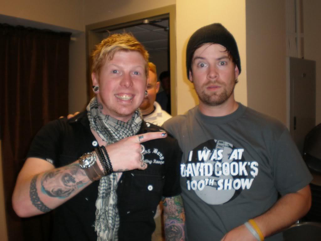 ステキ小話・・ツアーバスが会場について、荷物を降ろしているときに、クッキーも一緒になって荷物をバスから降ろしていたらしいんですが。そのときに警備の人が、自分が毎年こなしてる(おそらく警備員として)コンサートの数や、アーティストとやってきたかっていう話をしていたので、ファンの一人が、「ほとんどのアーティストは自分で自分の荷物を降ろすの?」と聞くと、いや、稀だね、といって、「実際のところ、他の誰かがやってるのは見たことないな。」と言ってから、"I attribute that to David Cook just being a down-to-earth guy."って言ってくれてたそうです。