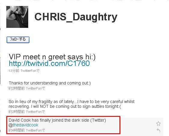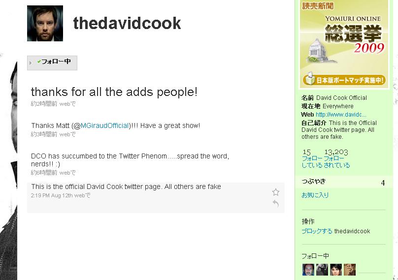 ついにDavid CookがTwitterはじめたぜーっ