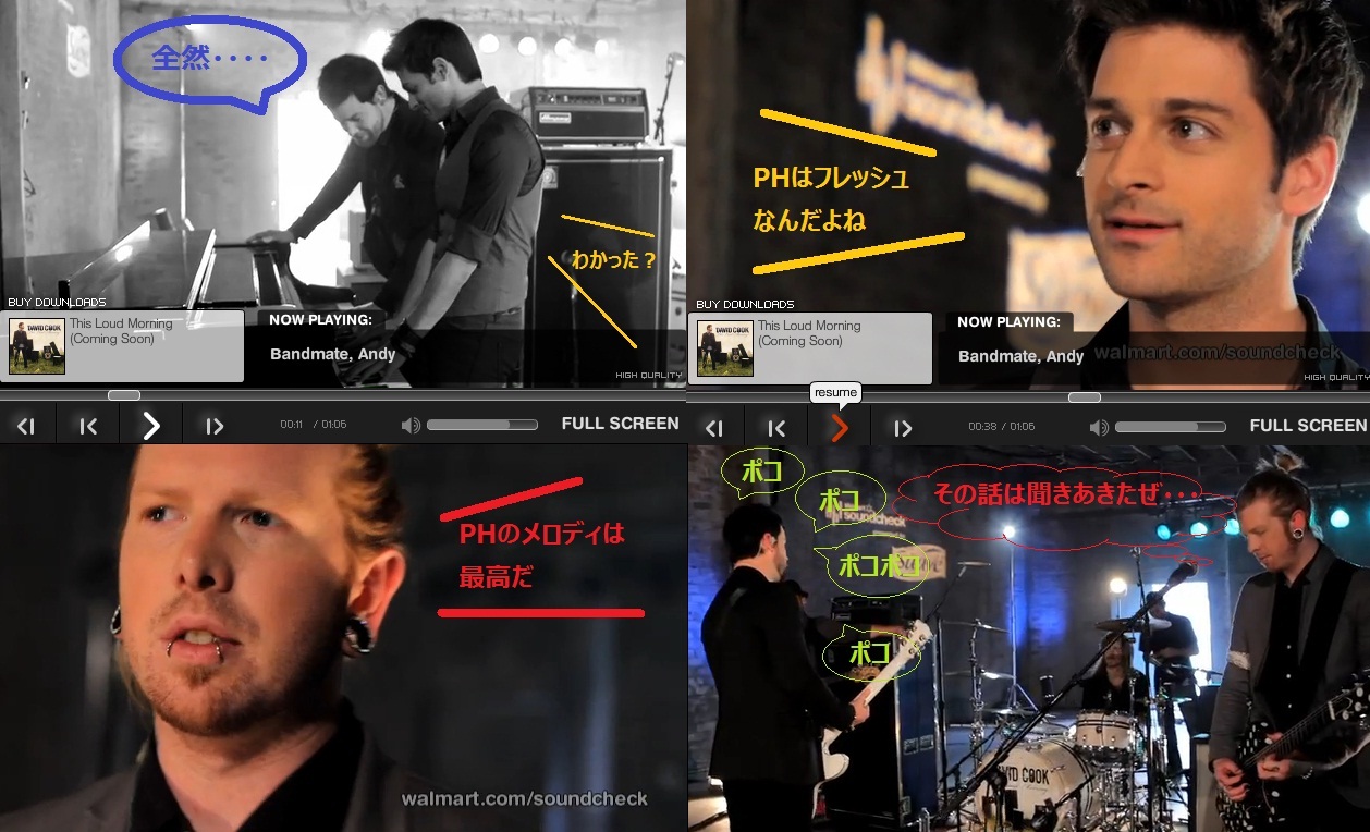 アンディとニールは、いつからDCと一緒にやってるかっていう質問+どの曲がアルバムの中で一番好きか+その理由・・など言ってます。(二人ともPHを選んでます)