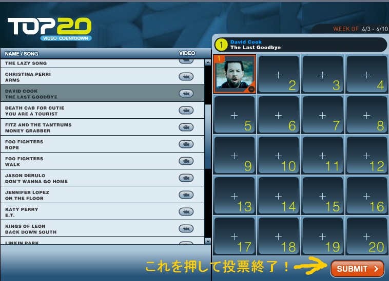 つぶやき2:DAVID COOK's "The Last Goodbye" ascends 21-20 with a bullet on the Adult Contemporary Audience chart.