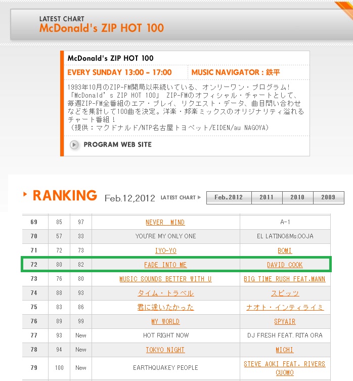 2月13日 MTVのJ-WAVE TOKIO HOT 100