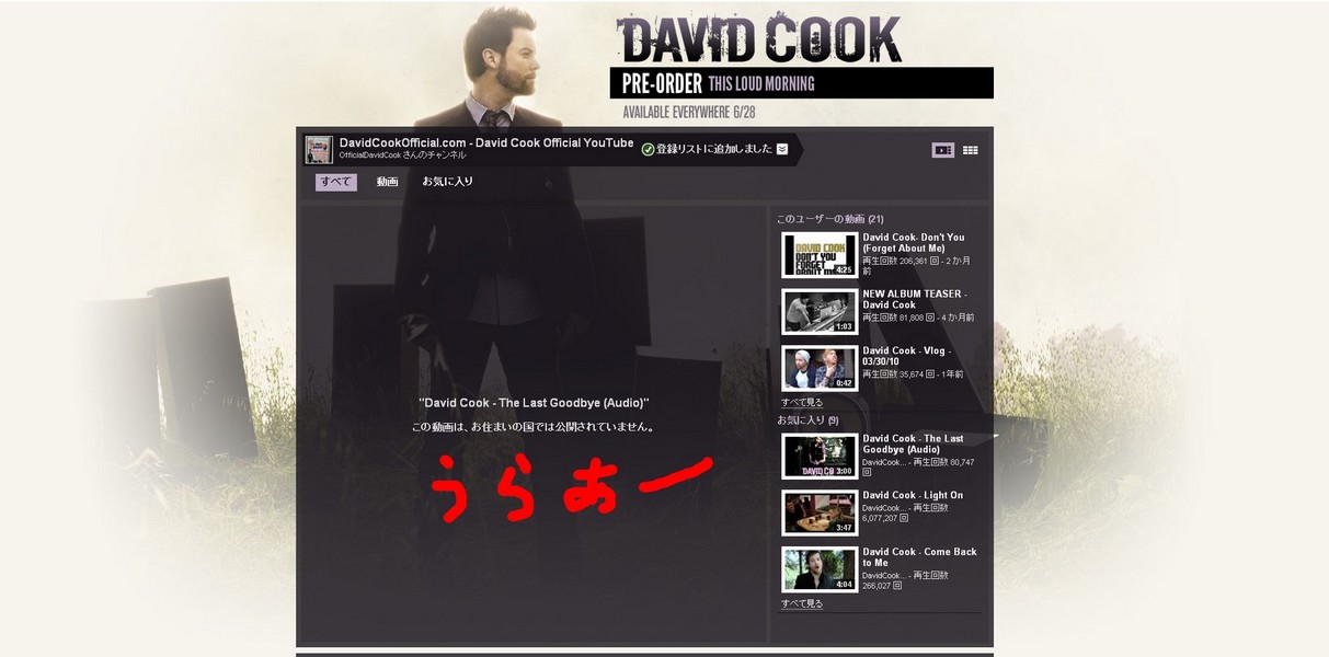 ↓ あとは、ミュージックビデオのページでも、トップにどどーん!