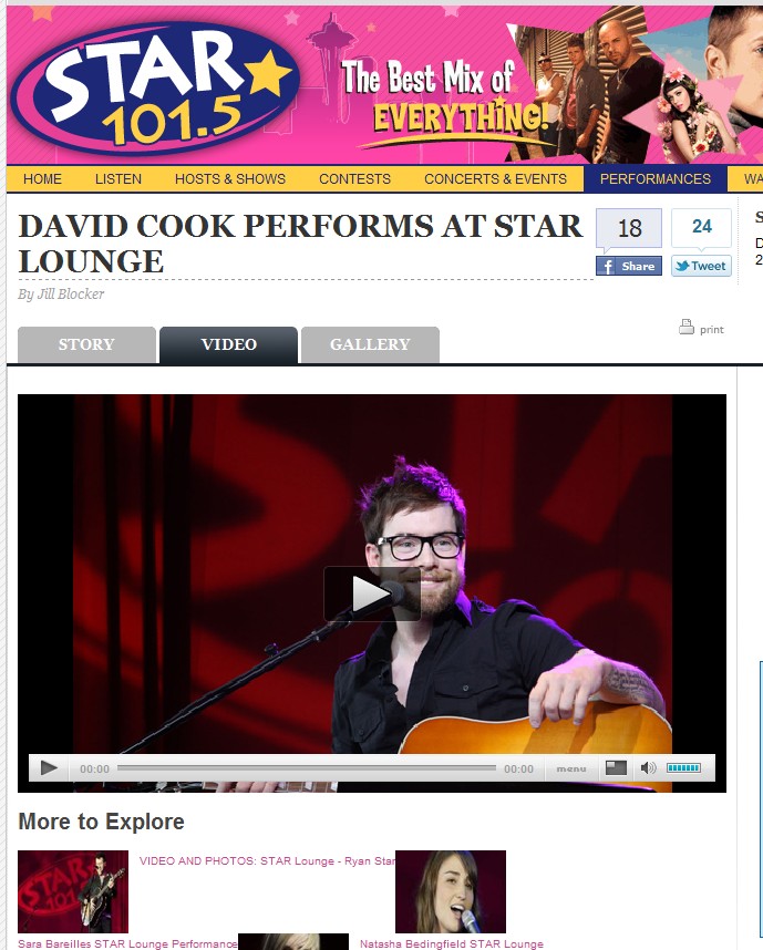 公式ツイッターでのつぶやき:@WMSoundcheck: Stay tuned David Cook fans: We'll be on set with him Monday! Details to come
