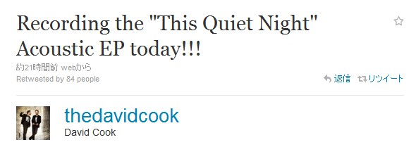 そしてこの方、同日にこんなつぶやきも:My boy David Cook...coolest guy on the planet! You made my world... (すでに紹介済みですけどね)