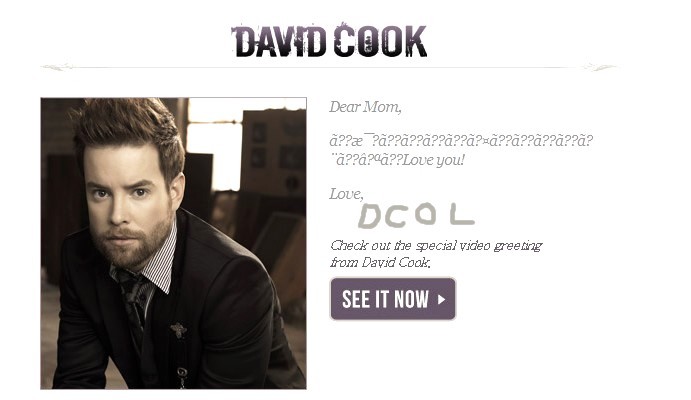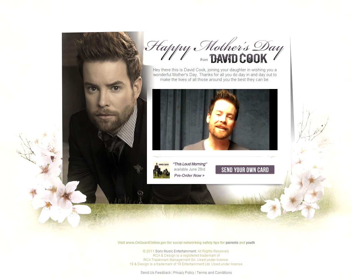 "Hey there this is David Cook, joining your daughter in wishing you a wonderful Mother's Day. "