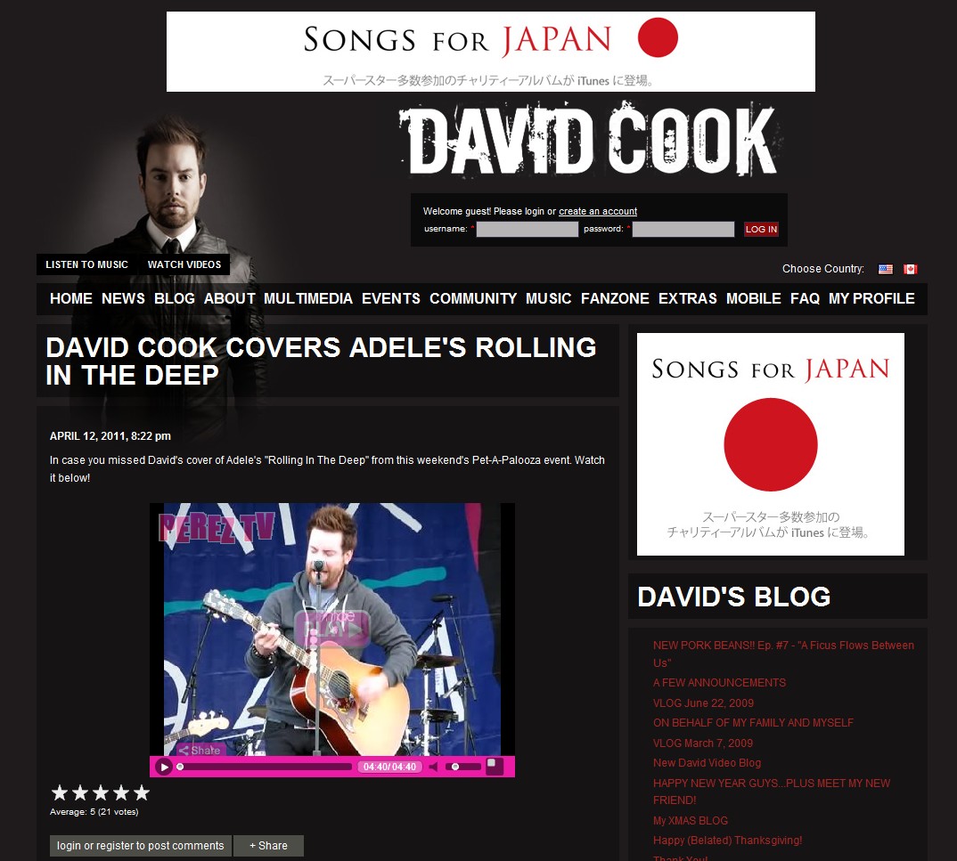 "Rolling In the Deep"のカバーが今、注目されてるけど、 John LegendやMike Posnerに続いて、David Cookも今週末に、この曲をカバーを披露と。