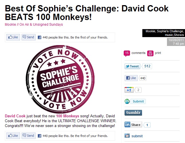 投票はちょろちょろしながらも、投票期間が短いのもあっていまいち紹介に出遅れていたSophie’s Challengeも、いつのまにやら最強アーティストが決定してしまいました!