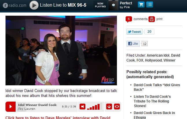 このDJのパパは、DCが大好きらしく、いつもDCのことを気にしてて、David Cookは特別だった、とDJにしょっちゅう言うそうです(笑) (人´∀`).☆.。.:*・ ナイスパパ!