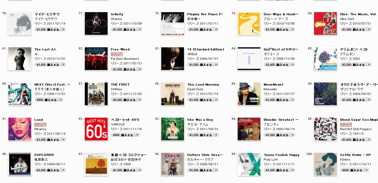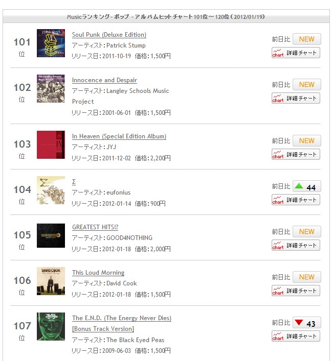 ちなみにアルバムは、106位、75位、78位と移行してます。(iTunesのダウンロードなので他の売上は入ってないです)