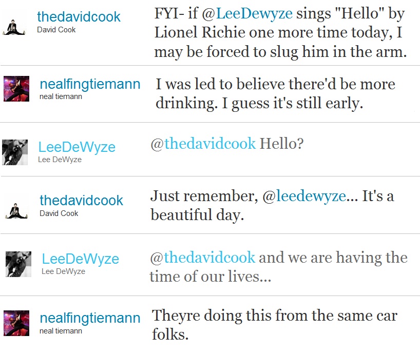 @idolsnow: DAVID COOK and LEE DeWYZE heading to the Bay Area to do a private show Saturday night (Oct 2) in Napa Valley CA.