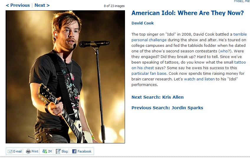 クッキーの出てるところを抜き出し①:Richard: But when you look back at the nights, David Cook had sensational, show stopping moments, where he redefined a song. Kris Allen had some fantastic nights too…. but no one shocks us this season.