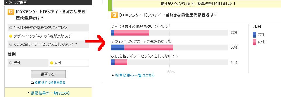 ともみさんから教えてもらったのですが、日本のアイドルのサイトのところでクッキー投票が出来るとか。