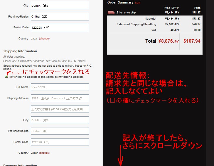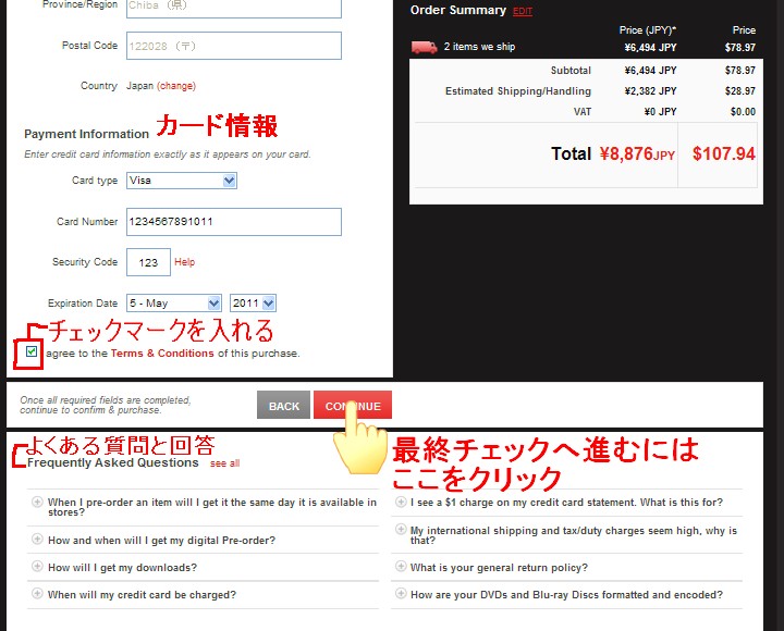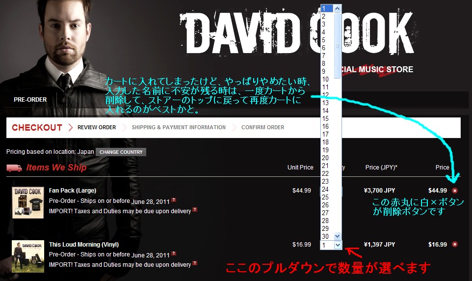 ※おかしなエラーメッセージが出る、名前記入のポップアップが出てこない・・・そんなメッセージが出てくる時は、カートの中身を空にして、もう一度最初からやり直すのが間違いがないと思います。
