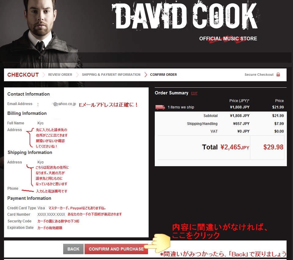 基本的に、物が購入出来たかどうかは、入力したE-mailアドレスに詳細メール(レシートのようなもの)が来ますので、ご確認下さい。