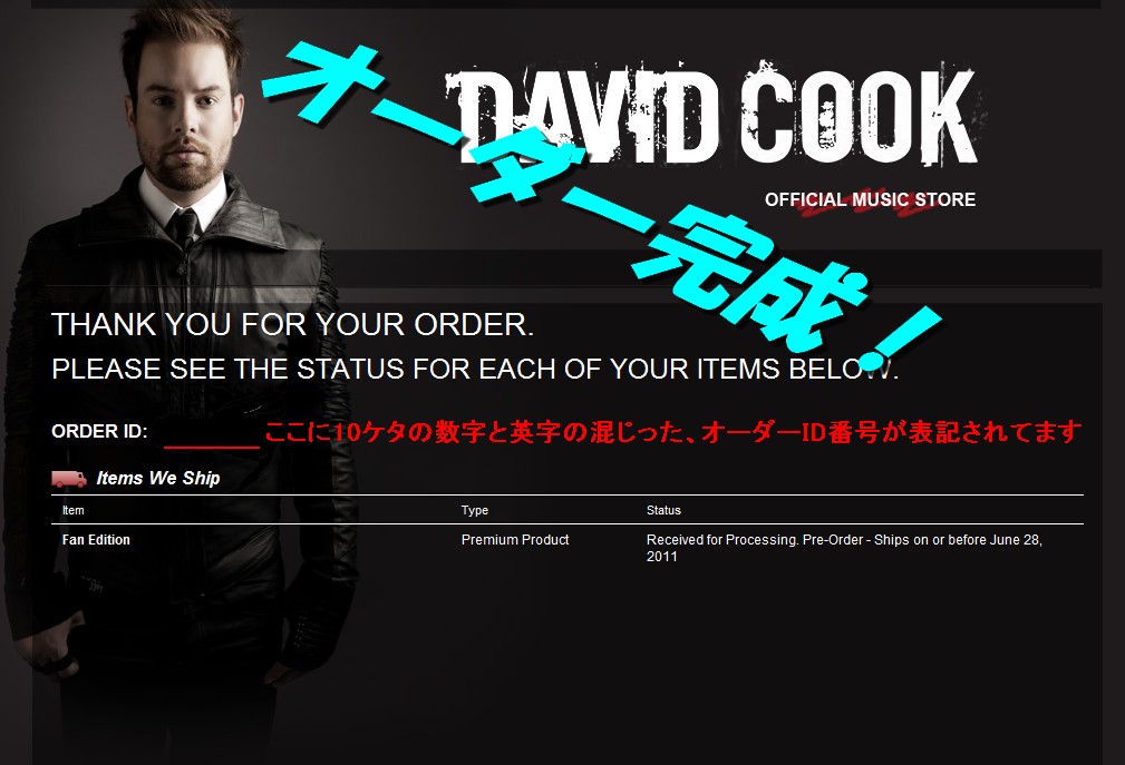 ここで、オーダー番号をゲットです。