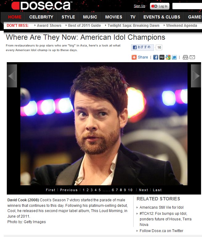 DC部分のコピペ:David Cook He's the most inventive "Idol," by far, in terms of arranging and rearranging songs for his radio-friendly voice.
