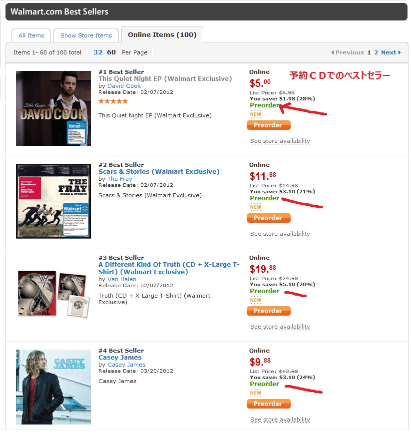 予約CDに限ったベストセラーの4位にランクインしてる人とか見れてちょっと嬉しかった。