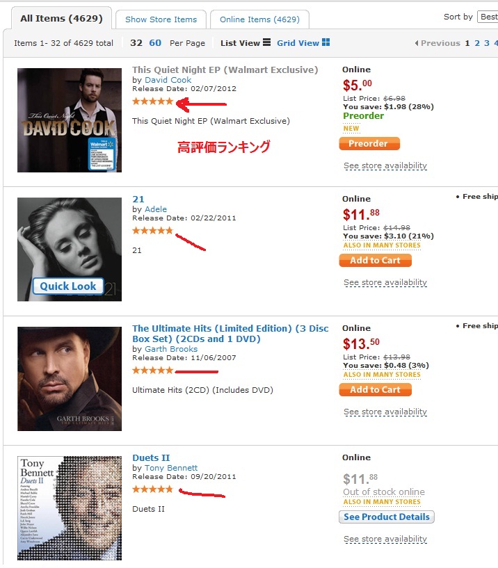 せっかくだから、予約CDのみベストセラー1位のスクリーンキャプチャと、高評価ランキング1位のスクリーンキャプチャもはりつけます。ウホ。 ちなみに高評価ランキングは・・・ファン(+購入予定者)のみんなが頑張って高評価つけたたまもののランキングとなります。はは。