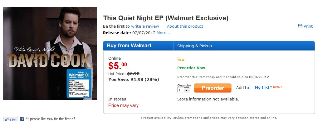 This Quiet NightがWalmartで単独発売!